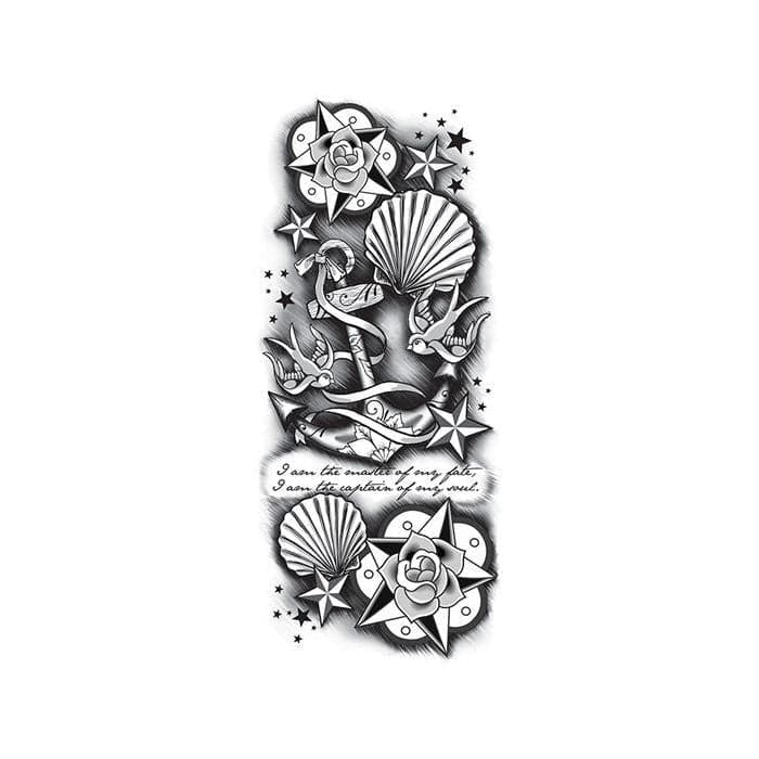 Black And White Anchor Sleeve Temporary Tattoo Temporary Tattoos